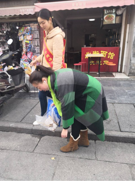 (志愿者们正在北街捡拾垃圾)(陈梦婷 摄)