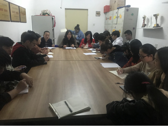 (外国语学院 通讯员 马晶晶)3月20日晚,外国语学院在北区24栋102会议室召开安全工作推进会。会议由外国语学院分管学生工作负责人龚丽丽主持。学工办主任呙小云、辅导员马晶晶、主席团全体成员以及18-15级全体班长参加了会议。