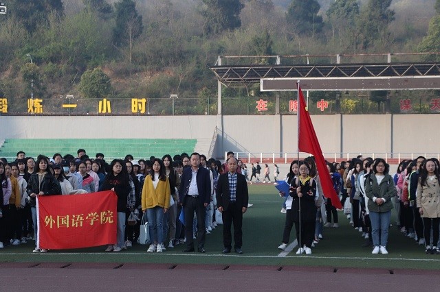 (外国语学院 通讯员 呙小云)2019年4月1日清晨,外国语学院组织学生举行升旗仪式。院党委书记陈丰杰在讲话中号召全体同学读书、锻炼、做公益,全面发展,从我做起。一个崇尚读书的校园,一定是一个健康而充满生机的校园。坚持锻炼,只有保持健康的身体状态,我们对生命意义与价值的不断追求才能释放价值。在刻苦学习知识的同时,多做一些有意义的公益活动,不断丰富磨炼自我,才能创造一个更有价值的人生。