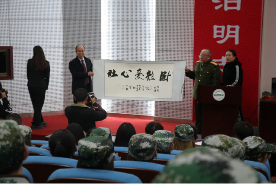 大一新生刚刚结束军训,田司令结合自身经历,生动形象的为学生们诠释了一名老战士的军人本色,为大家上了生动一课。同学们纷纷表示,要牢记党的嘱托,传承红色基因,刻苦学习,为实现中华民族伟大复兴的中国梦贡献自己的青春和力量。外国语学院学生胡玥琪说:“今天听了田爷爷的报告,我深切感受到了战争年代的惊心动魄,领悟到老一辈革命家的风采,体会到革命前辈不屈不挠、艰苦奋斗的斗争精神和高尚情操,也倍加感受今天的幸福生活来之不易。作为新时代的大学生,我们更应该不忘初心,刻苦学习,肩负起中华民族伟大复兴的使命!”
