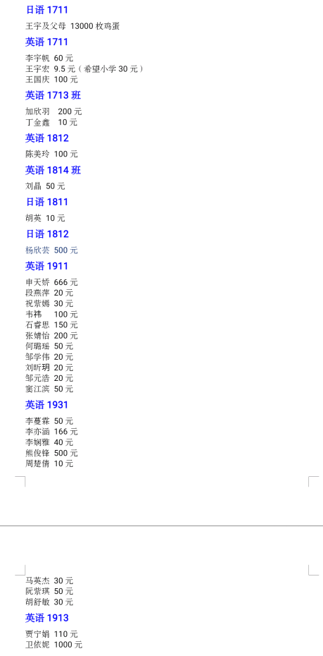 (外院 通讯员 呙小云 姚凯林)新冠肺炎疫情,牵动着外国语学院师生的心。为坚决遏制疫情扩散,全力打赢疫情防控阻击战,发扬“一方有难、八方支援”的优良传统,外院学子一直在行动。他们在不同时间、不同地点、不约而同的做了同一件事情,那就在各种公益平台上,自发地、在自己力所能及的范围内捐款捐物,奉献出自己的一份爱心。他们希望自己的小小一点心意能汇聚成河,能为战斗在疫情防控一线的医护人员多买一个口罩,多买一套防护服。