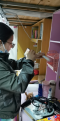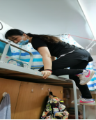 刘霞老师,一进到学生寝室就忙个不停,一边和学生视频,一边收拾物品。由于要到床上收拾被子蚊帐,她不顾危险和个人形象,爬上1米多高的床铺收拾东西。她说:“想起了当初送自己的女儿上学为她铺床的情景,真希望我们的付出能换来同学们行稳致远!”
