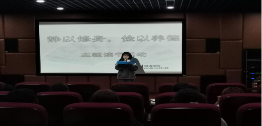 为了传承勤俭节约的良好院风,让同学们形成克勤克俭、约己束人的价值观念和行为习惯,特举办此次读书活动。参加本次读书活动的9位同学围绕活动主题分别讲述了精彩的故事,陈祖琪同学分享关于《诫子书》的感悟:“《诫子书》是诸葛亮54岁时写给8岁的儿子诸葛瞻的家书,是诸葛亮一 生经验的总结和对儿子殷切的期望和要求。诸葛亮不仅告诫了他的儿子,同时也告诫了我们,大丈夫要修身养性、以节俭、朴素来陶冶自己的情操,还要淡泊名利”。麻琪琪同学分享的《傅雷家书》也对静以修身,俭以养德有了进一步理解。傅雷家书向我们全面展示了具有现代精神的中国传统文化。沈依伊同学分享的《谁动了我的奶酪》,是一个经典的童话故事,并将勤俭节约与故事联系起来。