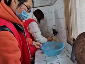 胡玥琪详细了解了老人的家庭和身体情况,陪伴老人拉家常、宣传防疫知识和党的好政策,同时不忘叮嘱老人,注意保暖,临走时老人紧紧拉着志愿者的手不愿松开。