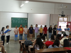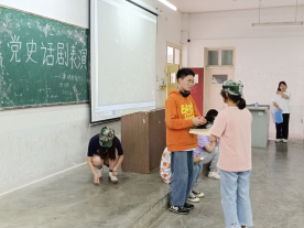 (外院通讯员 朱蓥)为了弘扬民族精神和爱国情怀,缅怀先烈们的革命精神和丰功伟绩。外国语学院学生党支部于5月20日晚6点30分在北区4栋阶梯02教室开展第二十七期入党积极分子党史话剧表演活动。本次活动由宣传部干事郑婷主持,第二十七期入党积极分子参加。