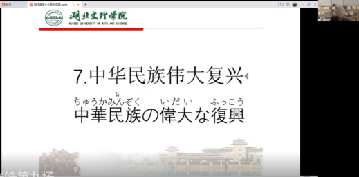 (外院教工通讯员 马鹏飞)2022年11月17日晚,外国语学院日语系副教授张皓通过腾讯会议举行了一场别开生面的线上讲座,用日语宣讲学习党的二十大报告。讲座从党的二十大主题、党的二十大的重大意义、全面准确完整把握党的二十大报告精神、过去五年的工作和新时代十年的伟大变革、中国式现代化及其本质要求、贯彻落实党的二十大、做新时代好青年等6个方面,和师生一起学习了党的二十大报告精神。报告会吸引了师生踊跃参加,现场互动热烈,气氛活跃,激发了大家的浓厚兴趣,引起共鸣。