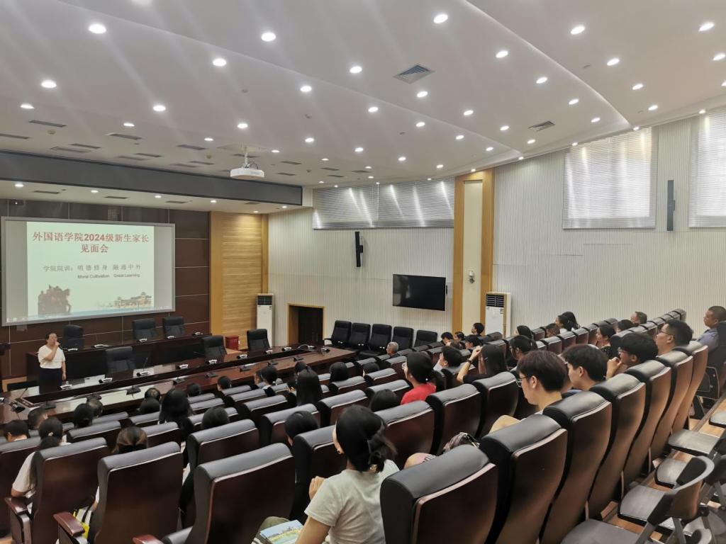 (外院通讯员 陈可)9月10日上午,外国语学院在图书馆一楼多功能厅召开新生家长座谈会,学院党委书记郑品胜、副院长袁在成、党委副书记张婷婷出席,各系部主任、辅导员及新生家长代表参会,会议由张婷婷主持。