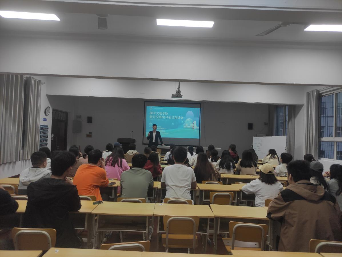 宣讲环节,邹虎介绍了赴日实习项目,是以促进海外大学生赴日参与就职体验,为参与赴日就职体验学生提供企业实习岗位,接受社会、高校监督,并为赴日实习海外大学生提供全方位管理支援的项目。项目宗旨是通过赴日交流实习,学习日本企业的管理经验和服务理念,在全日语环境下,通过日语实践经验的积累,提升学生的语言能力和职业技能,以提升就业竞争力,更好地满足社会和市场的需求,切合人才培养目标。通过其他学校赴日实习的生动图片展示,学生受到极大鼓舞,目前日语专业高年级学生共有9人报名拟参与该项目。