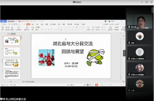 (外院通讯员 刘东)2020年7月28日上午9:00,由日本欧亚财团资助的日本文化类系列讲座第七讲正式开讲。本次讲座邀请到了湖北人人操人人爽日语系主任苗占婷主讲,讲座的主题为《湖北与日本大分县交流回顾与展望》。