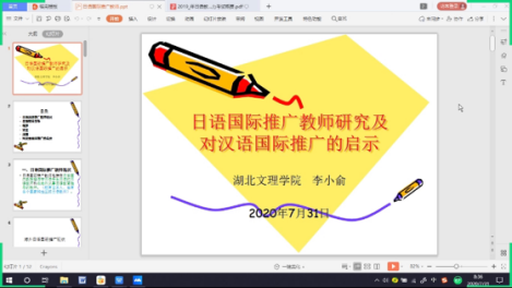 (外院通讯员 江一帆)2020年7月31日上午八点半,由日本欧亚财团资助的日本文化类系列讲座第十讲正式开讲。本次讲座邀请到了湖北人人操人人爽日语系支部书记李小俞副教授主讲,讲座的主题为《日语国际推广教师研究及对汉语国际推广的启示》。