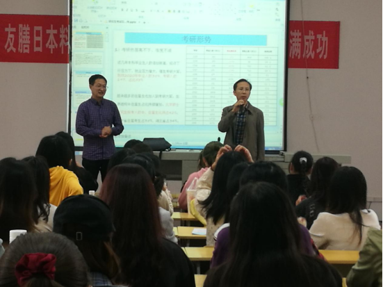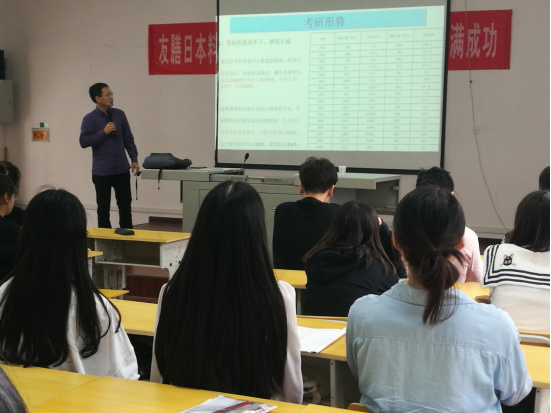 9月23日下午我院组织了2018级和2017级无课的学生参加长江大学外国语学院硕士研究生招生宣传动员会。在会上谢家成分析了近几年外语专业学生考研形势,长江大学外语考研命题特点,复习备考重点,同时热烈欢迎同学们报考长江大学外国语学院相关专业。谢家成富于激情与精彩内容的讲座有力地鼓舞了还在犹豫与观望状态的考研一族的考研信心!