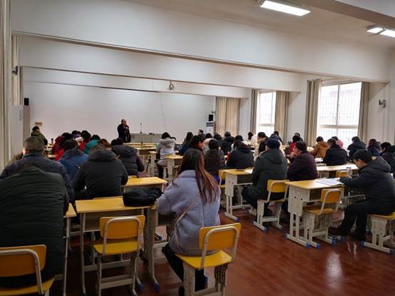 (外院 通讯员 王瑛)2019年2月22日下午,外国语学院全体教职员工在四栋315多功能厅召开新学期第一次全院例会,安排布置新学期各项工作。会议由院党委书记陈丰杰主持。会上,副院长袁在成、院长助理曹秀萍分别就教学工作和科研与学科建设工作向老师们通报了2018年度考核情况,汇报了2019年度工作目标与工作思路,并就学期初的重点工作进行了安排部署。院长汪国军对新学年的各项工作提出了五点要求: 一是要加强学习,转换思维;二是要坚持底线思维,做好本职工作;三是要讲学习,讲成才;四是要讲团结,讲和谐;五是要讲绩效,讲奉献。陈丰杰在总结发言中指出,希望在新的一年大家都有所收获,学院工作能更上一层楼。