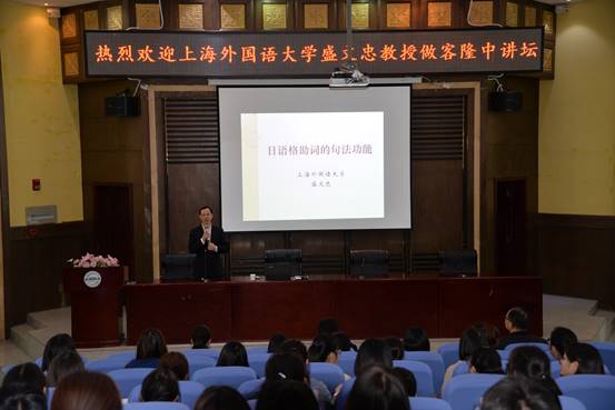 (外国语学院 通讯员 向朴容 肖陈毅)4月12日下午,上海外国语大学日本文化经济学院副院长、教授、博士生导师盛文忠应邀做客隆中讲坛,为日语专业全体师生作了一场题为《日语格助词的句法功能》的学术讲座。讲座由外国语学院日语系书记李小俞主持。