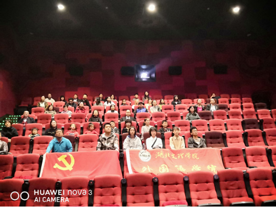 (外院 通讯员 张婷婷) 为进一步加强外院师生爱国主义教育,激发广大师生爱国主义、集体主义精神,凝聚正能量,提振精气神,调动大家干事创业热情,10月13日上午,外国语学院党委、工会组织教职工和家属及部分学生代表在襄城长江银兴影城集中观看电影《我和我的祖国》。