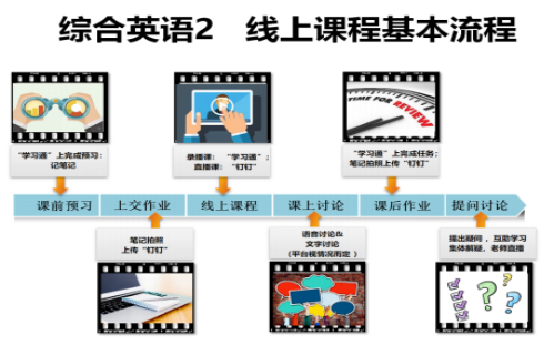 当然,协助社区做好疫情防护的同时,我们的本职工作更是重中之重,和其他工作岗位的性质不一样,本着“停课不停学”的原则,我们的教学工作从2月17日起就正常开展了,只是工作的地点从教室转移到了线上。由于课程改革,我教授的《综合英语》课程在上学期更换了全新的教材。正常情况下,我们在下学期开学前才能领到新教材。但是为了更充分的准备下学期的教学,我们课程团队早早就自己提前购买了下学期的教材和教参,这个“英明”的决定,让我们在开展线上教学之处做到了临危不乱。由于我们使用的教材在任何平台都没有配套的慕课,而在更换教材后,曾经储备的线上资源也不太匹配。所以我们的线上课程几乎要从零做起。在比较了MOOC、智慧树以及外研社UNIPUS等平台的优劣之后,我们课程团队确定了将超星学习通和钉钉作为主要教学平台,我们将收集的素材、PPT课件、相关视频以及外刊阅读材料等资源放在学习通的“资料”板块,随时根据时事补充实用有益的资料,尽力丰富学生线上学习体验。每周我们会在钉钉上下发学习任务、布置作业以及问题答疑等活动。