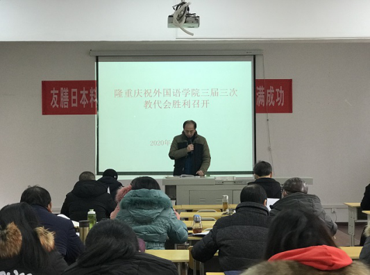 (外院 通讯员 张婷婷)12月24日下午,外国语学院第三届教职工代表大会第三次会议隆重召开,外院领导和院教代会代表参加了大会。会议由外院党委副书记、工会主席张婷婷主持。