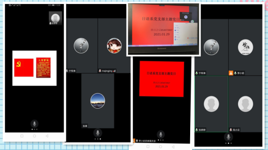 (外国语学院通讯员 李小俞)2021年1月29日日语系党支部通过腾讯会议开展支部主题党日活动,主题为“牢固树立底线思维,勇当疫情防控先锋”。会议由支部书记李小俞主持。按照议程安排,全体党员齐唱国歌,在支部书记的带领下重温入党誓词,交纳1月份党费。