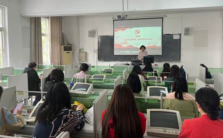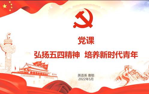 (外国语学院通讯员 郭楠)2022年5月12日下午15:30,英语系教工党支部在语音室开展了5月支部主题党日活动,活动主题为:“传承红色家风 涵养初心使命”。会议由支部书记王瑛主持。