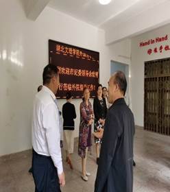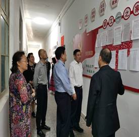 调研期间,余世明一行专程来到外国语学院,实地了解外国语学院特色廉洁文化建设情况。在外院的警示教育和教师“廉洁从教学习心得”专栏前、在学生“拒绝酒驾”手抄报宣传展板前、在外院廉洁文化墙前,外国语学院党委书记陈丰杰向领导们一一汇报学院廉洁特色文化建设情况,领导们驻足观看,听取汇报,表示满意,肯定外院“上级有要求,党委有行动,师生齐参与,创建有特色。”