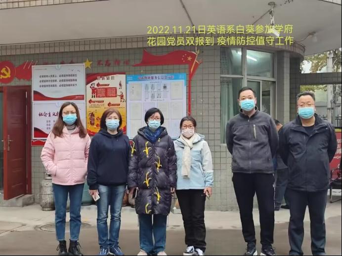 (通讯员 呙小云)党员是鲜红的旗帜,教师是笔挺的标杆。每当危难时刻、紧要关头,总有人站出来、冲在前、勇担当,发挥先锋模范作用。当战“疫”的号角再次吹响,接到上级和社区需要志愿者的任务时,外国语学院领导干部和党员教师们积极响应号召,与“下基层察民情解民忧暖民心”活动相结合,与“学习贯彻党的二十大精神、学习先进榜样做先锋”活动相结合,主动参加“双报到”和共同缔造活动,下沉社区基层,冲在抗疫前线,争当先锋表率,服务师生员工,服务社区群众,共同缔造美好环境,在志愿服务中彰显党员的责任担当和人民教师的光辉形象。