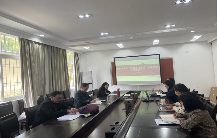 (外国语学院通讯员 游芳)为深入落实教育部关于《习近平谈治国理政》多语种版本“三进”(进高校、进教材、进课堂)工作要求,4月27日下午,外国语学院在一楼会议室召开了“理解当代中国”系列教材“进课堂”教学座谈会,研讨“理解当代中国”系列教材“进课堂”实施相关工作。“理解当代中国”多语种系列教材旨在将“习近平新时代中国特色社会主义思想”融入到语言与文化教学之中。我院开设了英语、日语“理解当代中国”相关课程。会议由教学督导组组长胡国敏主持,相关院领导、英语系、日语系课程负责人及教科办人员参会。