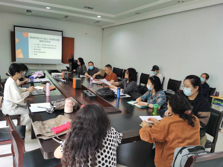 (外国语学院通讯员 汪珣) 外国语学院英语系于2023年5月18日下午16:00开展了2023版专业人才培养方案制定研讨活动,首先由英语系主任陈鸾带领学习《普通高等学校本科专业类教学质量国家标准》和《普通高等学校本科教育教学审核评估实施方案》,并解读2019版专业人才培养方案中的毕业要求、课程结构、课程支撑毕业目标点等内容。专业教师根据专业认证要求和认证专家反馈意见对人才培养方案的修订进行了深入的研讨,总结2019版人才培养方案在执行过程中的优点,分析了存在的问题和不足。专业教师提出了人才培养方案中课程设置的问题,对矩阵支撑不够合理、部分指标支撑不均衡的问题进行了广泛深入的讨论,对本专业2023版人才培养方案的制定提出了新思路。