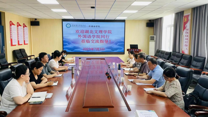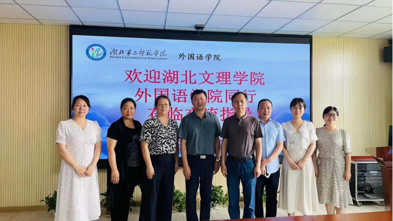 (外国语学院通讯员 汪 珣) 7月3日下午,外国语学院主持行政执行工作的副院长袁在成、党委副书记张婷婷、英语系主任陈鸾等一行6人赴湖北第二师范学院外国语学院就英语师范类专业认证进行交流学习。湖北第二师范学院外国语学院院长刘晖,党委副书记姚勇、副院长冶慧颖、唐植君及部分骨干教师热情接待了我院一行。