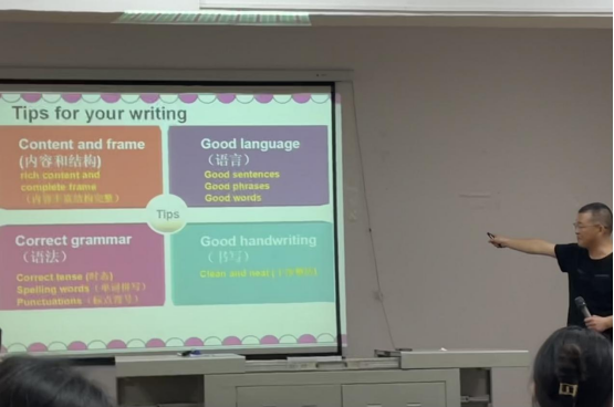 (外国语学院通讯员 张子腾)2023年9月5日下午,襄阳市襄州区英语教研员杨根祥应外国语学院英语系邀请,以《中学英语课堂教学设计》为题,在S4-315为外国语学院教育方向的实习生们做了一场内容丰富的讲座,近百名学生聆听了讲座。