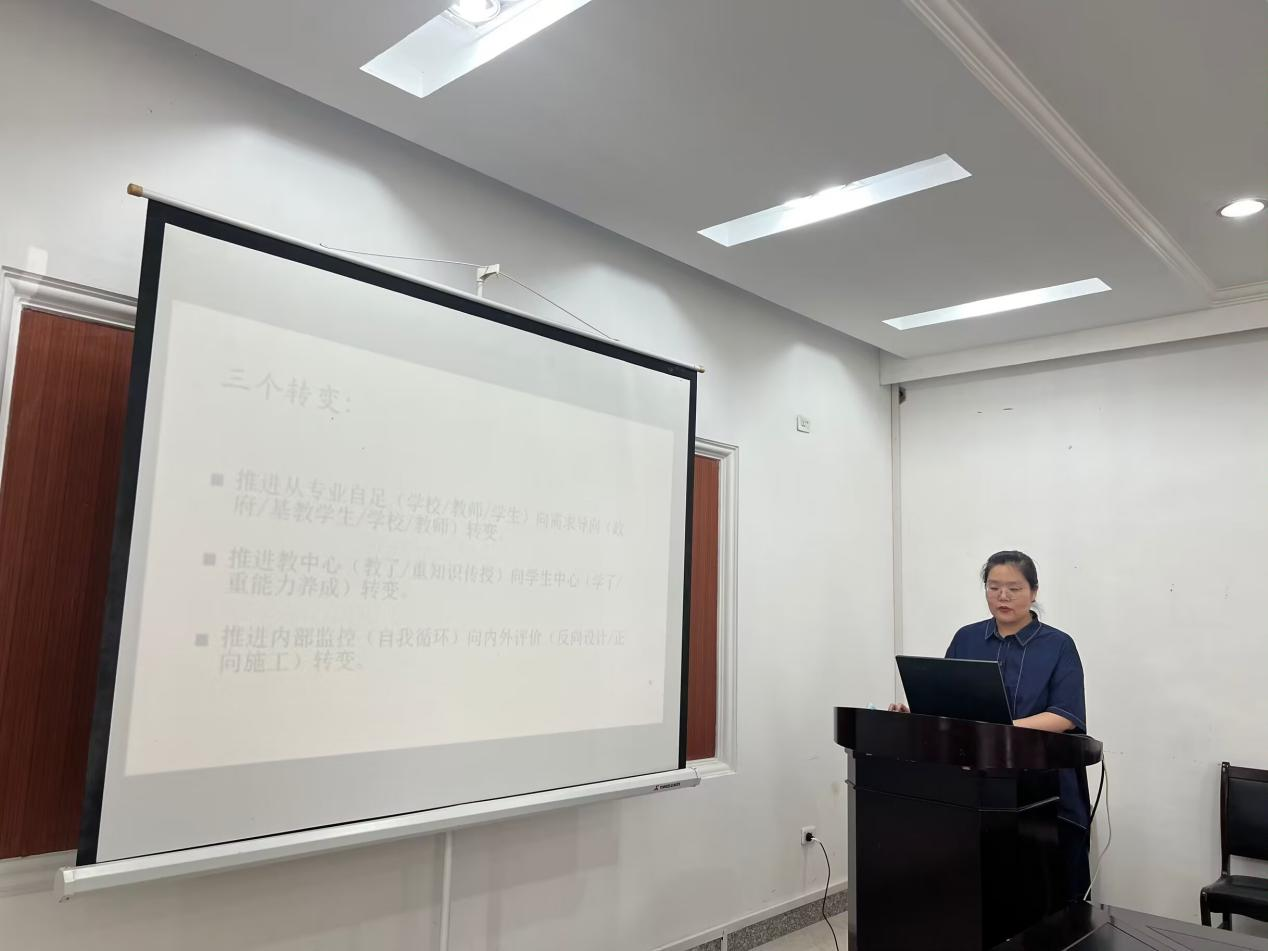 (外院通讯员 郭笑甜、王 瑛)2023年6月1日,外国语学院英语师范专业认证应知应会第十三讲在一楼会议室展开,主讲人郭笑甜,英语系全体教师参加。