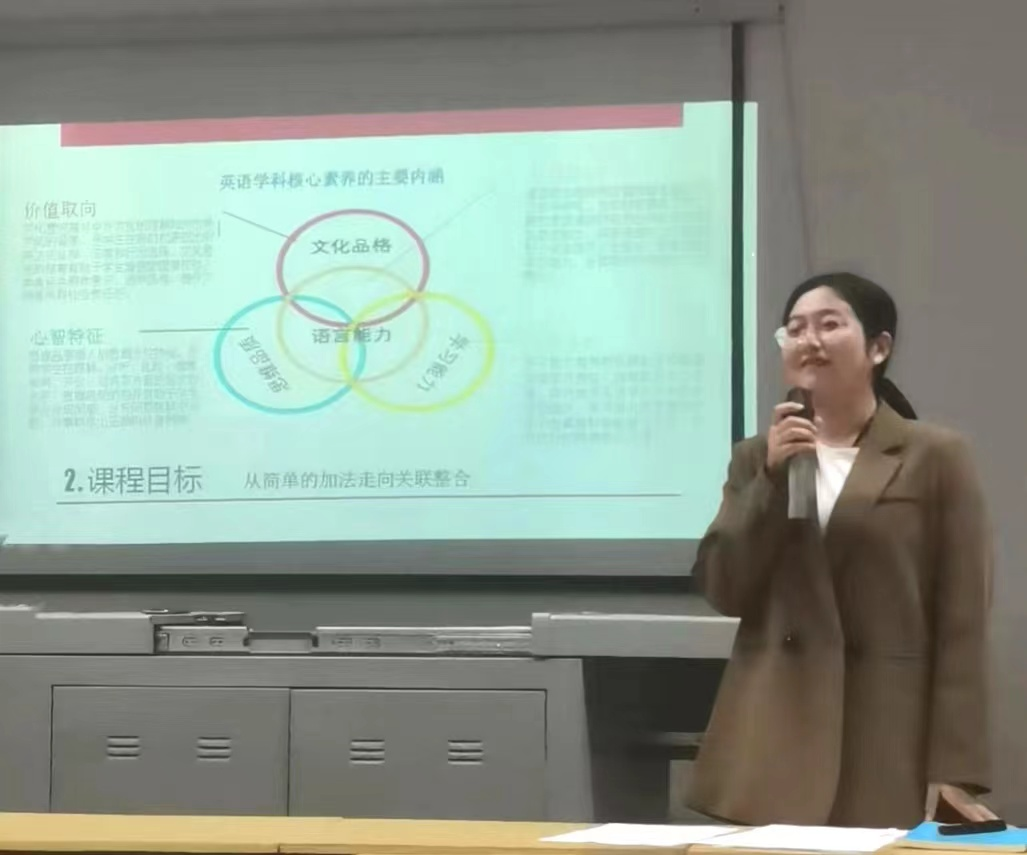 首先,林红丽老师以如何进行教学设计为引,启发实习生进行思考,由此导入此次讲座的主题。讲座上,林红丽首先谈到英语新课标的时代背景。她指出,新课标的变迁历经“三代”,即双基目标时代、三维目标时代、核心素养时代。课标的显著特征也由单一的工具性逐渐转变为工具性加人文性的双重特征,旨在促进学生的全面发展,培养学生的综合能力。并且林红丽强调,“为谁培养人、培养什么人、怎样培养人”的三大问题是贯穿整个教学生涯的基础性、关键性、本质性问题,这需要每位实习生能够做到用心记事情,用脑想问题,用手做事情,不断挖掘课标理论深度,不断提高教学实践水平。