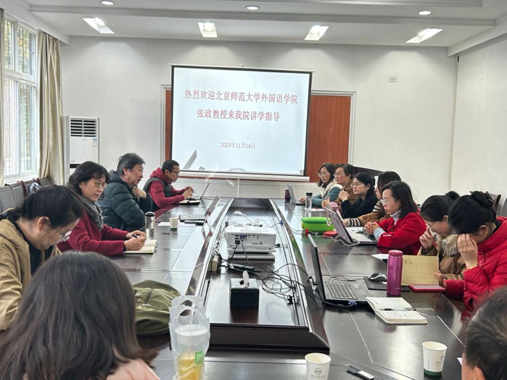 (外国语学院通讯员 贺丽晶)为进一步推动外国语学院2024年国社科项目申报工作,提高教师课题申报质量和项目立项率,2023年11月14日下午,学院特邀北京师范大学张政教授作为指导专家在外语学院一楼会议室举办了以“国社科项目申报选题及研究思路分析”为题的研讨会。会议由外国语学院副院长王林主持,近二十名科研骨干教师参加了研讨会。