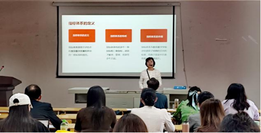 会上,英语系教工党支部书记王瑛带领老师们学习了本科教育教学审核性评估指标体系,从指标体系的定义、构成和作用等方面,着重讲解了湖北文理学院本科教育教学指标体系的具体内容、评估方法和新一轮指标体系的特点等相关知识,并进行了现场测试。