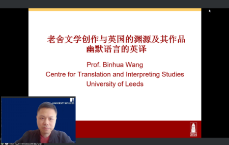 (外国语学院通讯员 贺丽晶)2024年9月18日晚,英国利兹大学终身讲席教授、博士生导师王斌华应邀做客隆中讲坛,在线为我校外国语学院、文学与传媒学院等学院师生作了题为“老舍文学创作与英国的渊源及其作品幽默语言的英译”的学术讲座。讲座由外国语学院副院长王林主持。