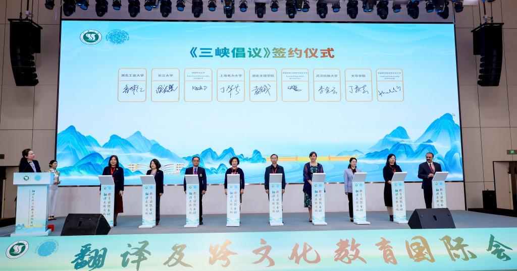 外国语学院副院长袁在成教授参与签署了《三峡倡议》,旨在通过建立交流平台,加强知识和资源的共享,推动翻译与跨文化教育领域中外学者之间的合作与互信。