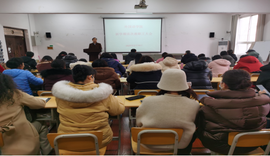 (外院通讯员 王文浩)2025年2月15日上午,外国语学院召开新学期教职工大会。会议由副院长袁在成主持,学院班子成员和全体教职工参加会议。